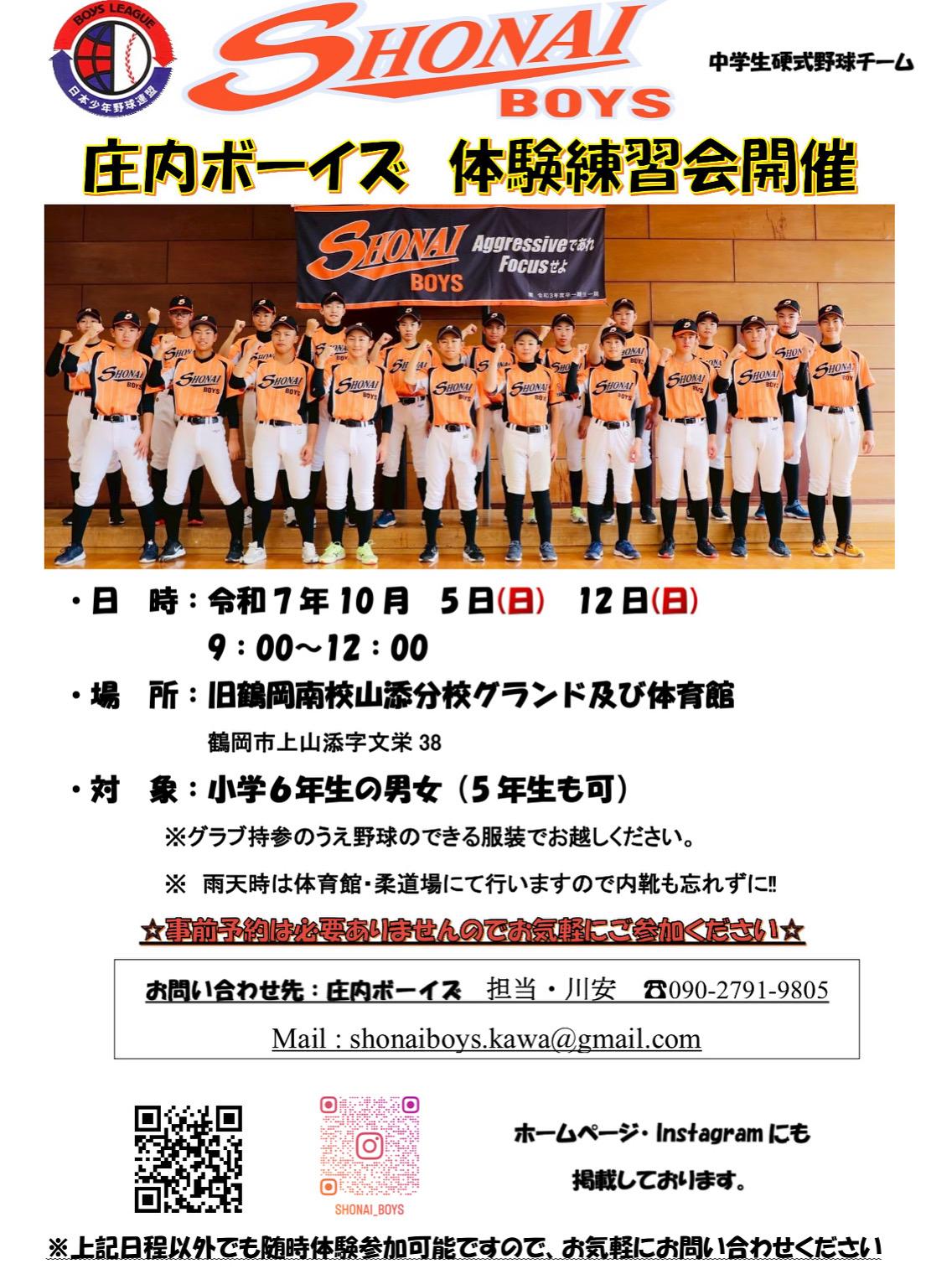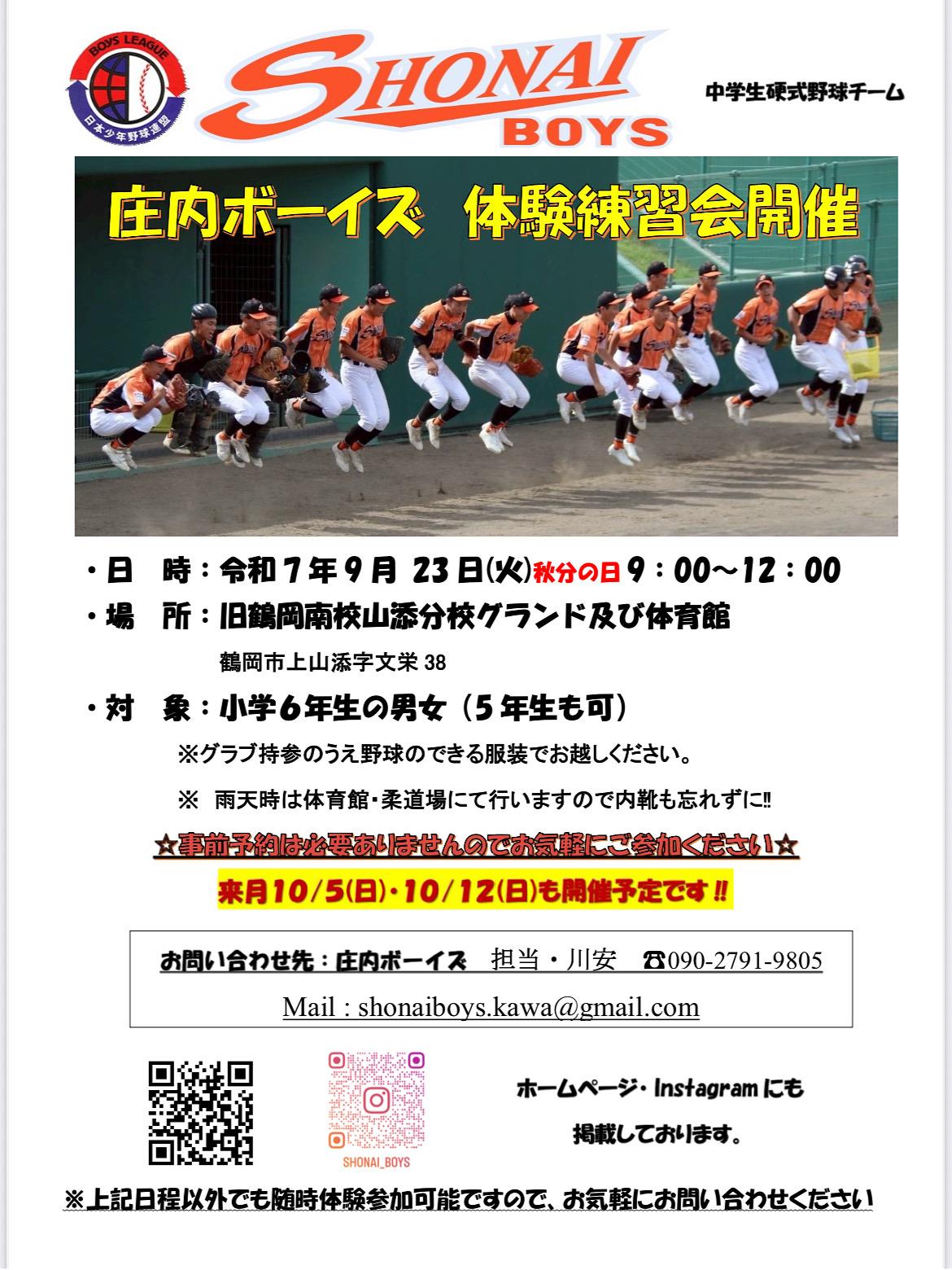 次回以降もぜひ、庄内ボーイズの体験会にご参加ください!